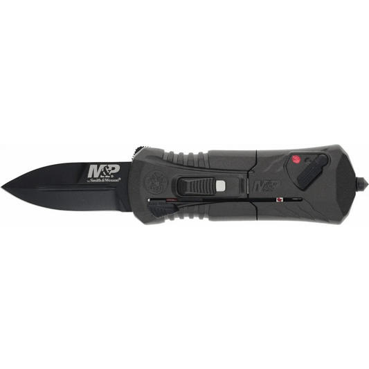 Smith & Wesson OTF Assisted Knife 3.5" Black Double Edge Blade, Gray Aluminum Handles, Slide Lock - 1084314