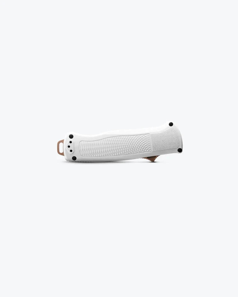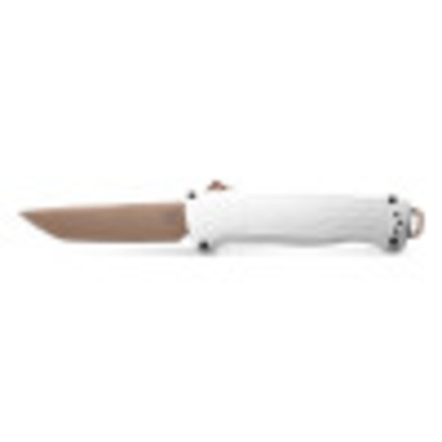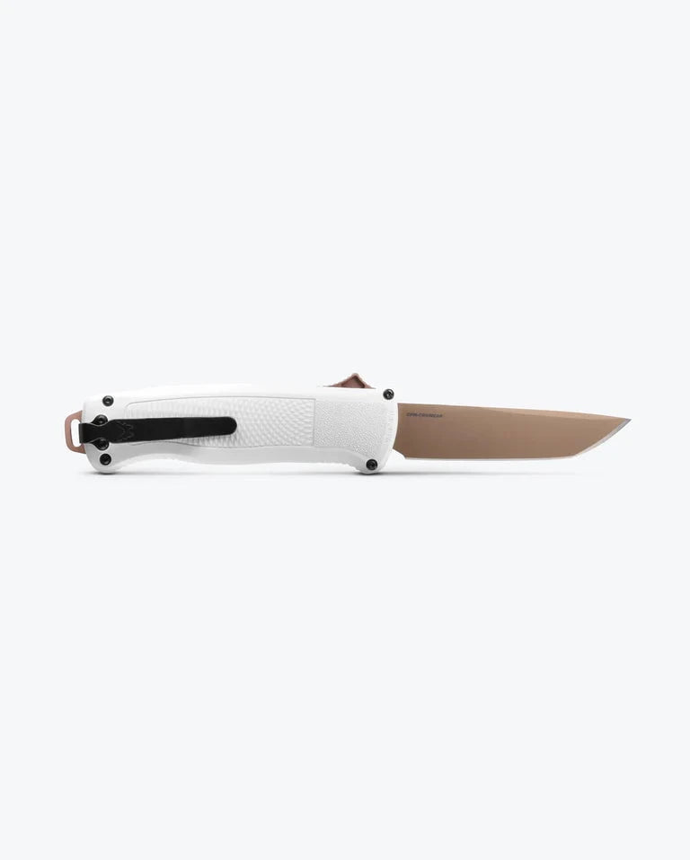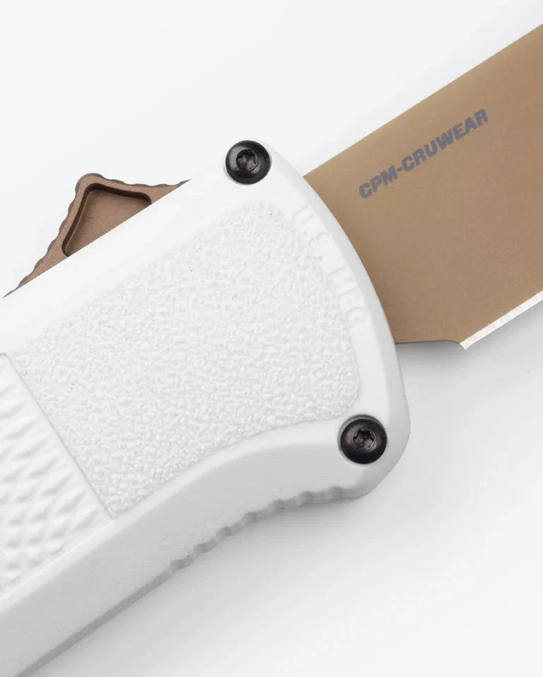 The Benchmade Shootout is a Benchmade OTF knife with some seriously great attributes. It features a lightweight CF-Elite handle with a reversible pocket clip and a CRU WEAR super steel blade. While it's not an issue for all, for others, symmetry is a must. We're happy to report that the Benchmade Shootout has a centered blade, not offset like many OTF knives.