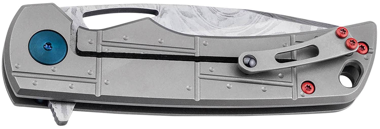 Boker 01BO910DAM P-51 Damast 3.35" Drop Point Plain Silver Acid Etch Damascus Blade Titanium Handle