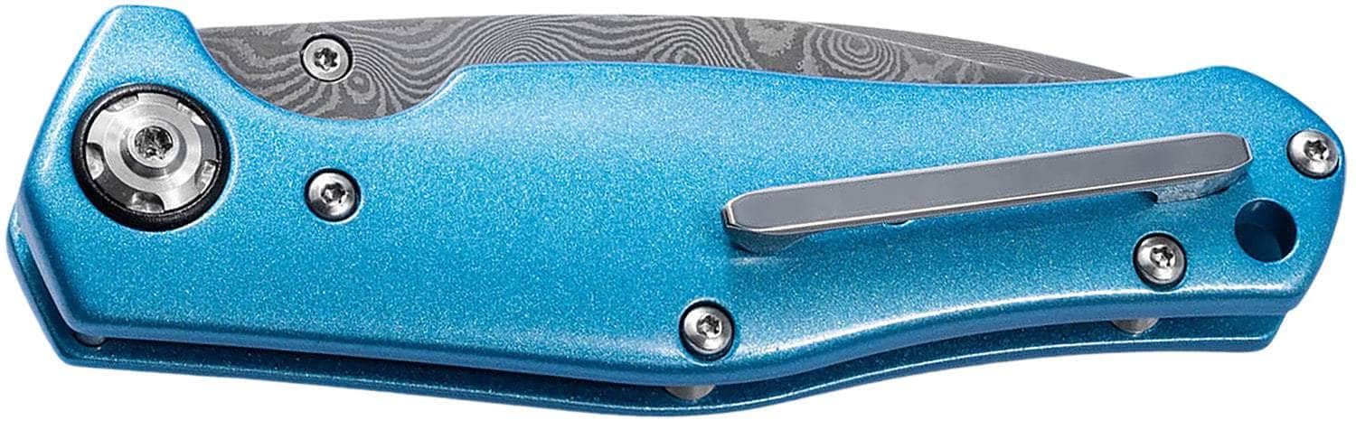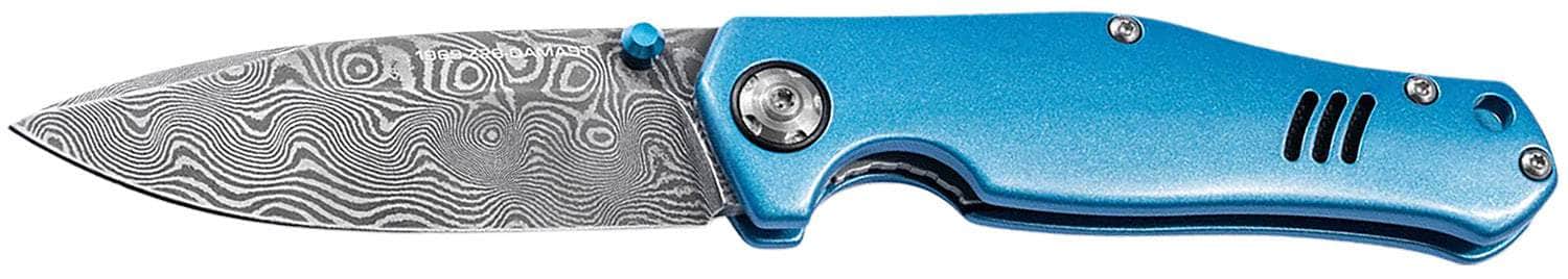 Boker 111101DAM 3.15" Drop Point Damascus Blade Blue Aluminum Handle