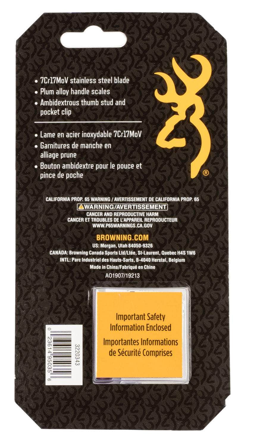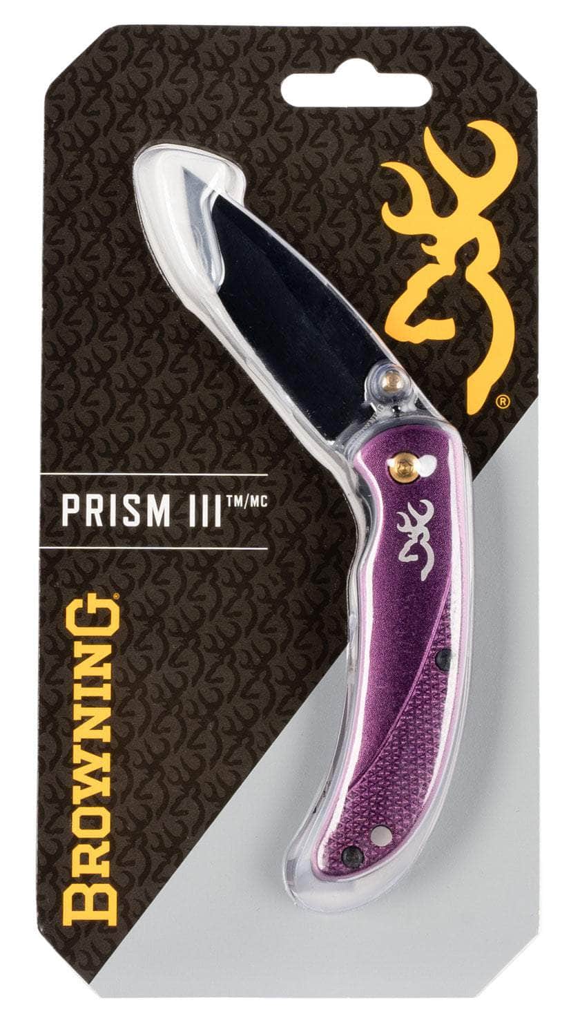 Browning 3220343 Prism 3 EDC Folding 2.38" Plain Black Oxide 7Cr17MoV SS Blade, Plum w/Brass Accents & Logo Anodized Aluminum Handle, Includes Pocket Clip