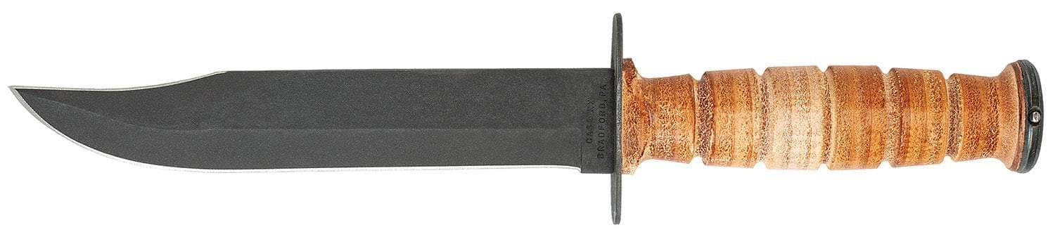 Case 00334 USMC 7" Fixed Clip Point Plain Blackened 1095 Carbon Steel Blade Grooved Leather Handle