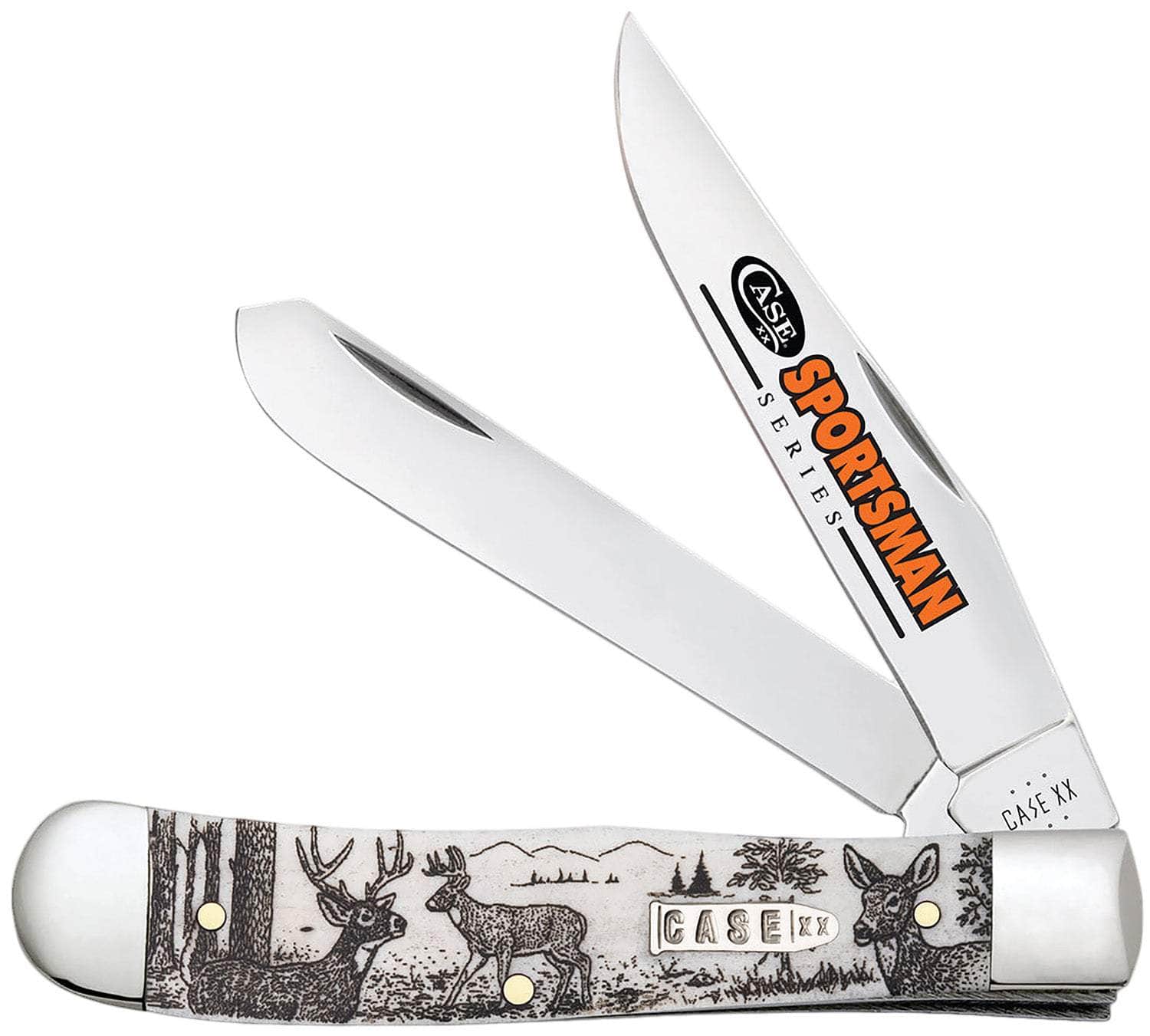 Case 81220 Trapper Sportsman Folding Clip Point/Spey Plain Mirror Polished Tru-Sharp SS Blade/Deer Embellished Natural Bone Handle