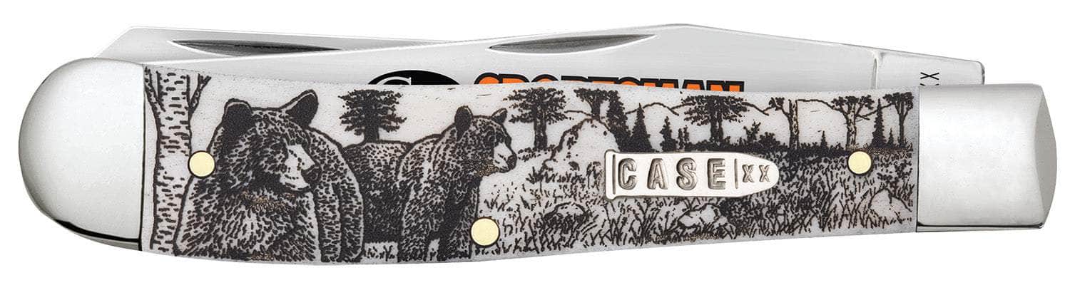 Case 81223 Sportsman Trapper 3.24" Clip/3.27"Spey Folding Plain Mirror Polished Tru-Sharp SS Blade, Bear Wildlife Engraving Natural Bone Handle