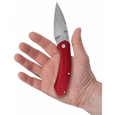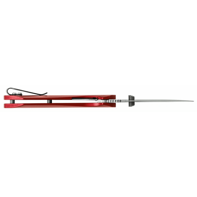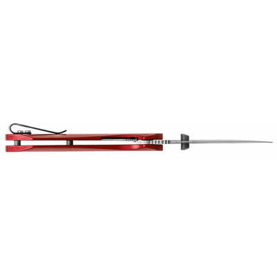 • Stonewashed satin S35VN Steel blades; Smooth Red Anodized Aluminum handle