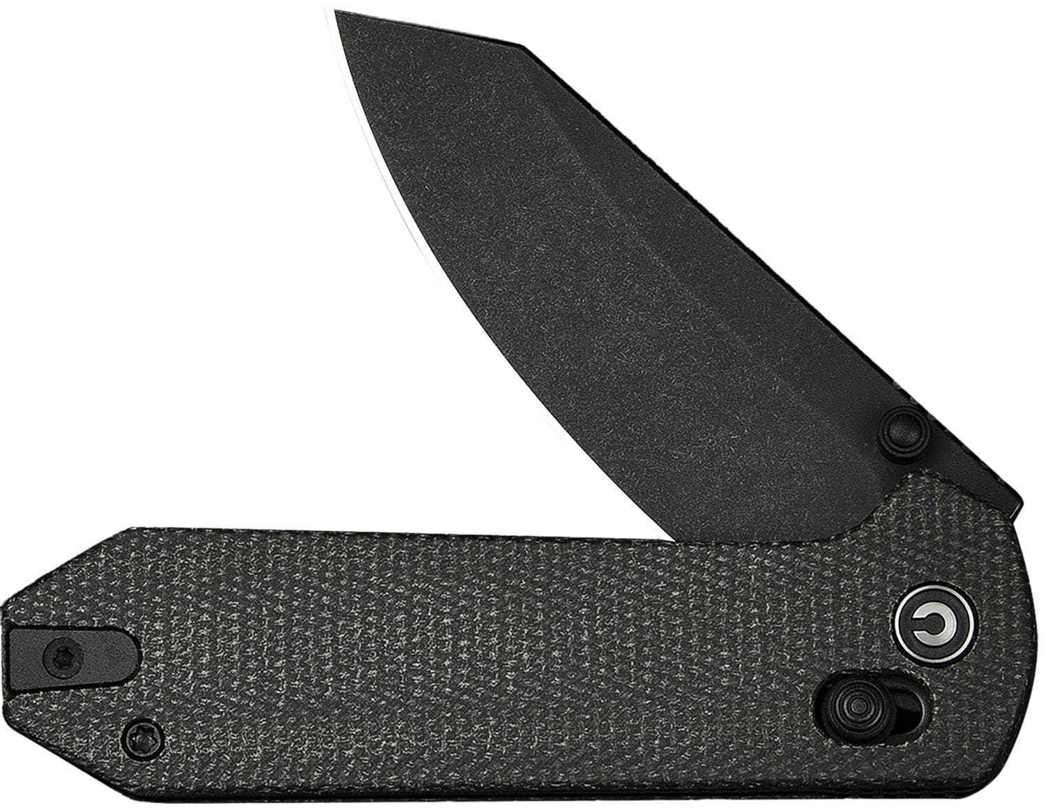 Civivi Knives C23073B-1 Yonder 2.88" Folding Spey Point Plain Black Stonewashed 14C28N Steel Blade, Dark Green Canvas Micarta Handle