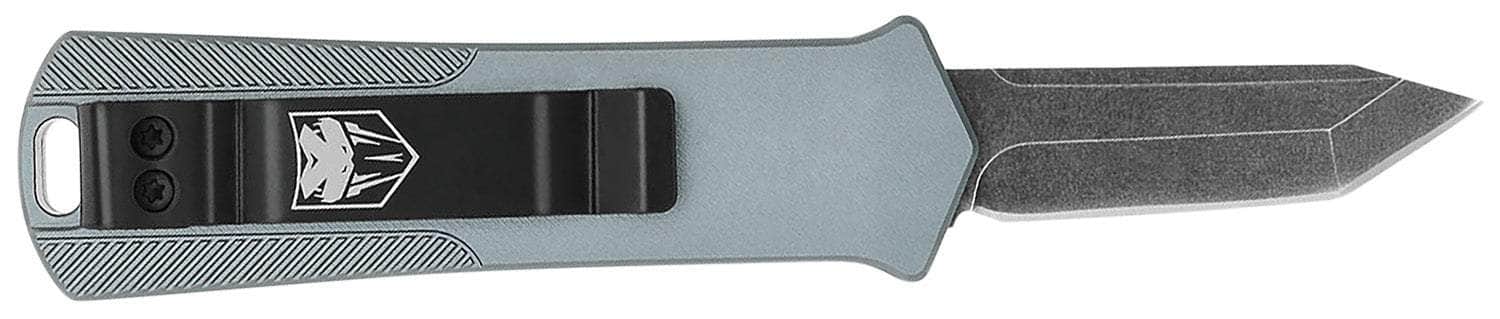 CobraTec Knives CALI952GRYTNS California 952 *CA Compliant 1.75" OTF Tanto Plain Black Stonewashed D2 Steel Blade, 3" Gray Anodized Aluminum Handle