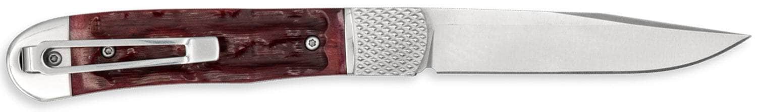 CobraTec Knives CTTHRRED Trapper Hidden Release 3.12" Flip Open Drop Point Plain Satin D2 Steel Blade, 4.25" Red Textured Bone Handle