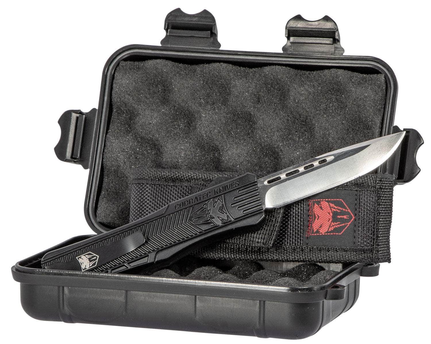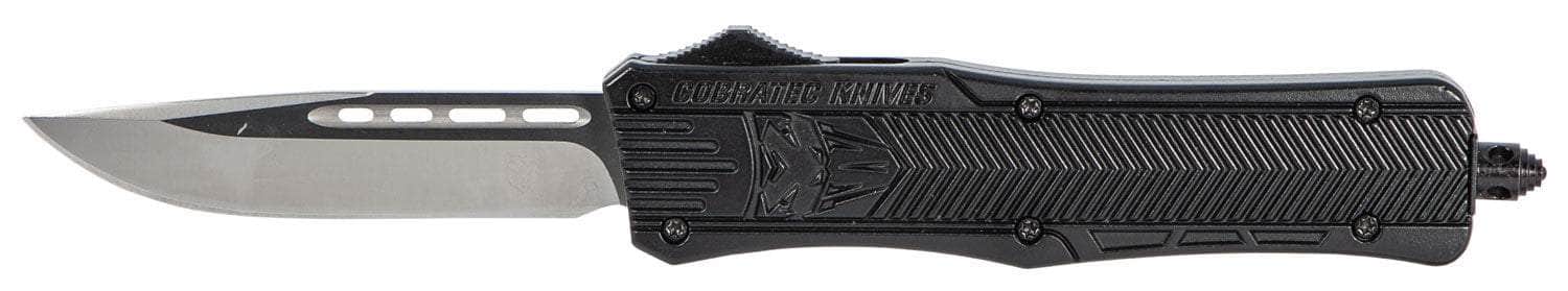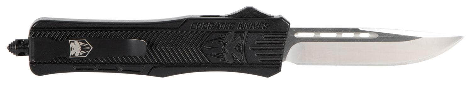 CobraTec Knives MBCTK1MDNS CTK-1 Medium 3" OTF Drop Point Plain D2 Steel Blade/Black Aluminum Handle Features Glass Breaker Includes Side Button