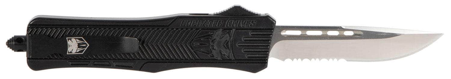 CobraTec Knives MBCTK1MDS CTK-1 Medium 3" OTF Drop Point Part Serrated D2 Steel Blade/Black Aluminum Handle Features Glass Breaker Includes Pocket Clip