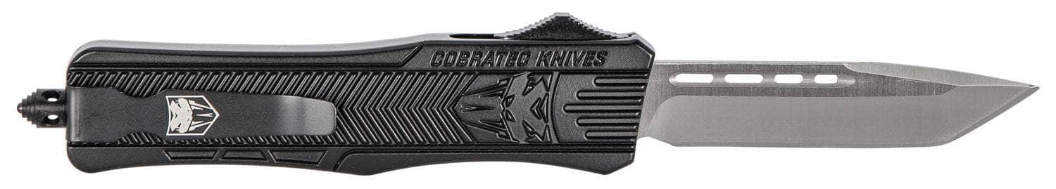 CobraTec Knives MBSTK1MTNS CTK-1 Medium 3" OTF Tanto Plain D2 Steel Blade/Black Aluminum Handle Features Glass Breaker Includes Pocket Clip