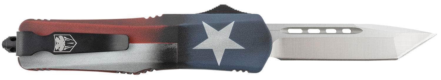 CobraTec Knives MCTXFS3TNS FS-3 Texas Flag Medium 3" OTF Tanto Plain Satin D2 Steel Blade, 5" Texas Flag Aluminum Cerakoted Handle