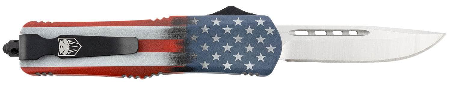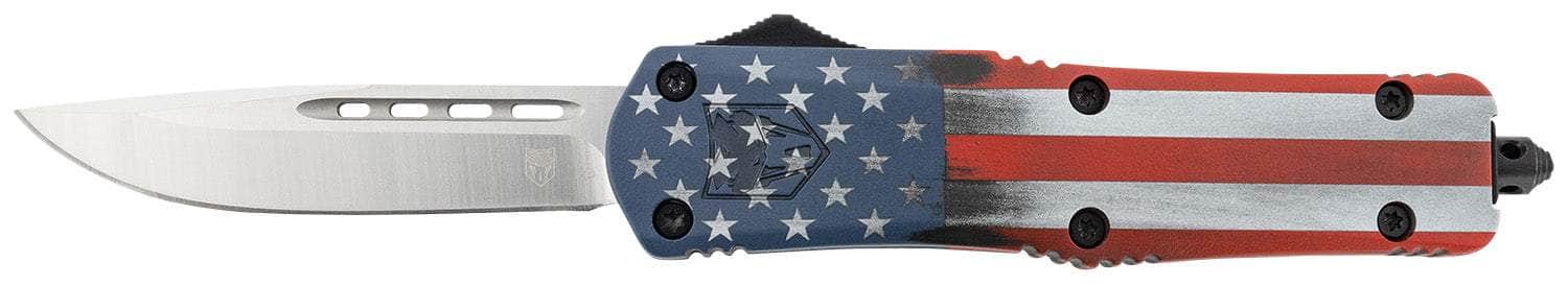 CobraTec Knives MCUSAFS3DNS FS-3 American Flag Medium 3" OTF Drop Point Plain Satin D2 Steel Blade, 5" US Flag Aluminum Cerakoted Handle