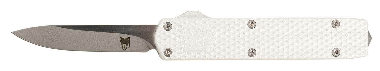 CobraTec Knives MNSILMGEN2DNS Mini Mamba Gen II 2.25" OTF Plain Stonewashed D2 Steel Blade, 3.38" Silver Textured Anodized Aluminum Handle, Features Glass Breaker, Includes Pocket Clip