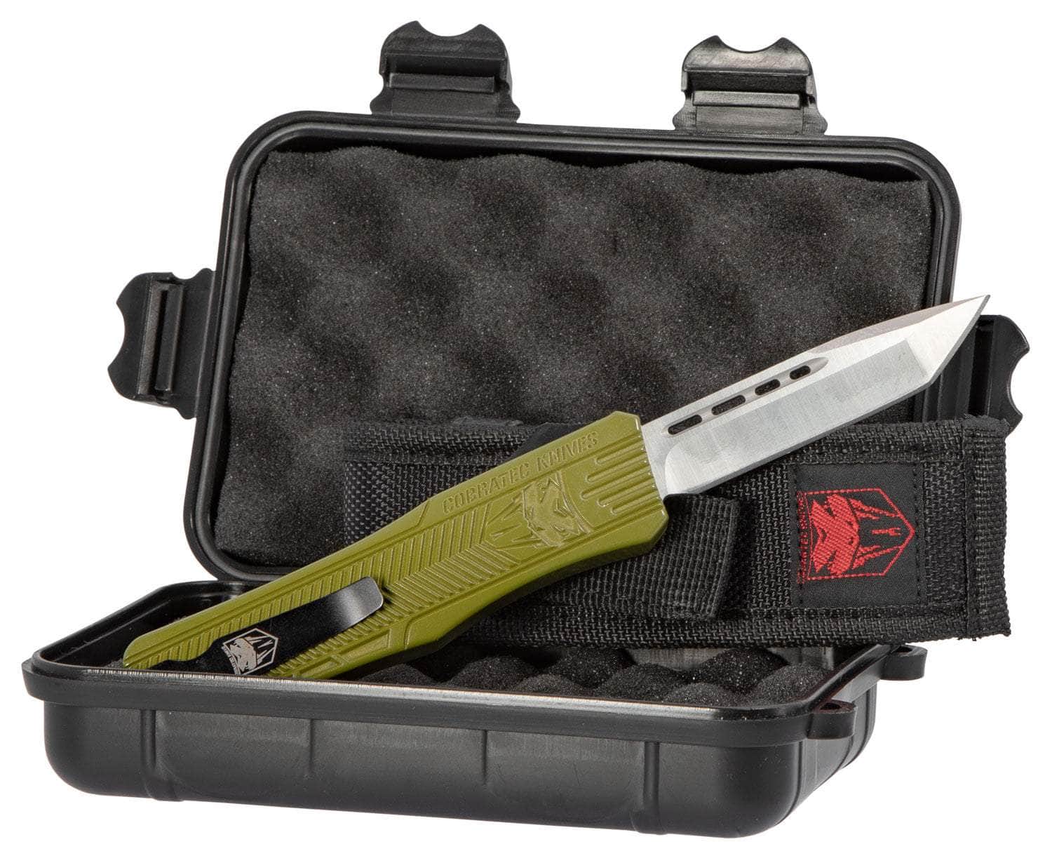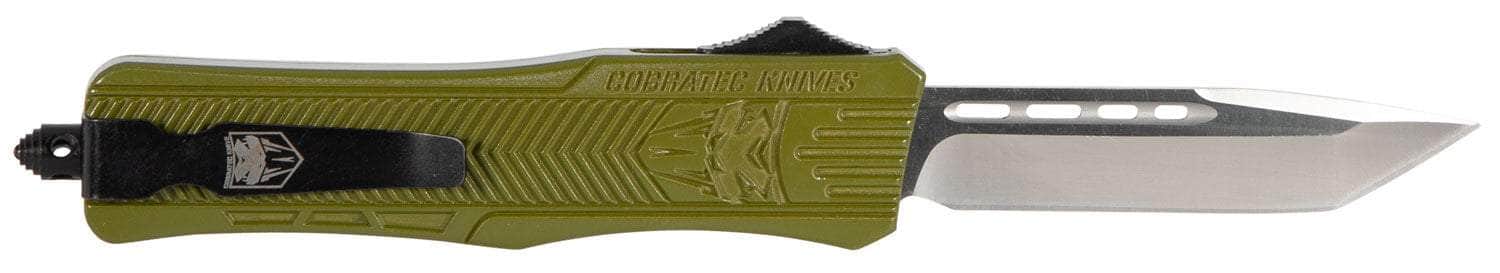 CobraTec Knives MODCTK1MTNS CTK-1 Medium 3" OTF Tanto Plain D2 Steel Blade/OD Green Aluminum Handle Features Glass Breaker Includes Pocket Clip