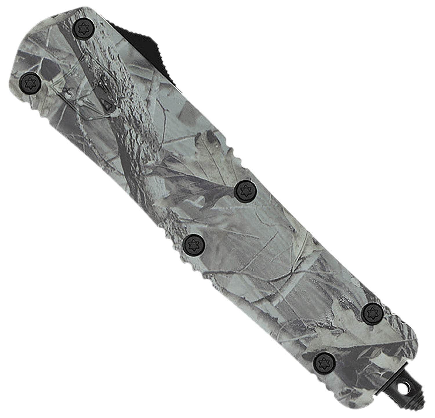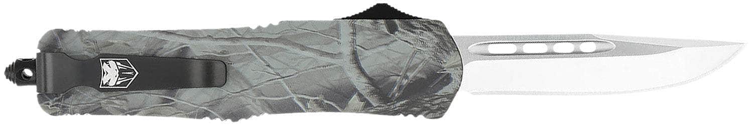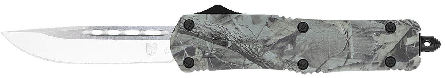 CobraTec Knives MWDFS3DNS FS-3 Medium 3" OTF Drop Point Plain D2 Steel Blade, 4.50" Woodland Camo Aluminum Alloy Handle