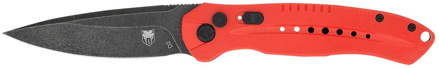 CobraTec Knives REDDIABLOAUTO Diablo 3.50" Folding Black Stonewashed D2 Steel Blade, 4.75" Red Textured G10 Scales Handle