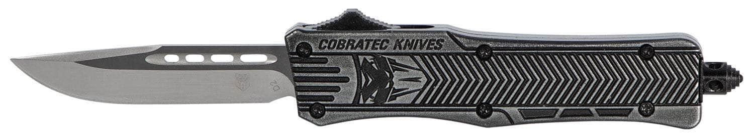 CobraTec Knives SSWCTK1SDNS CTK-1 Small 2.75" OTF Drop Point Plain D2 Steel Blade/Black Stonewashed Aluminum Handle Features Glass Breaker Includes Pocket Clip