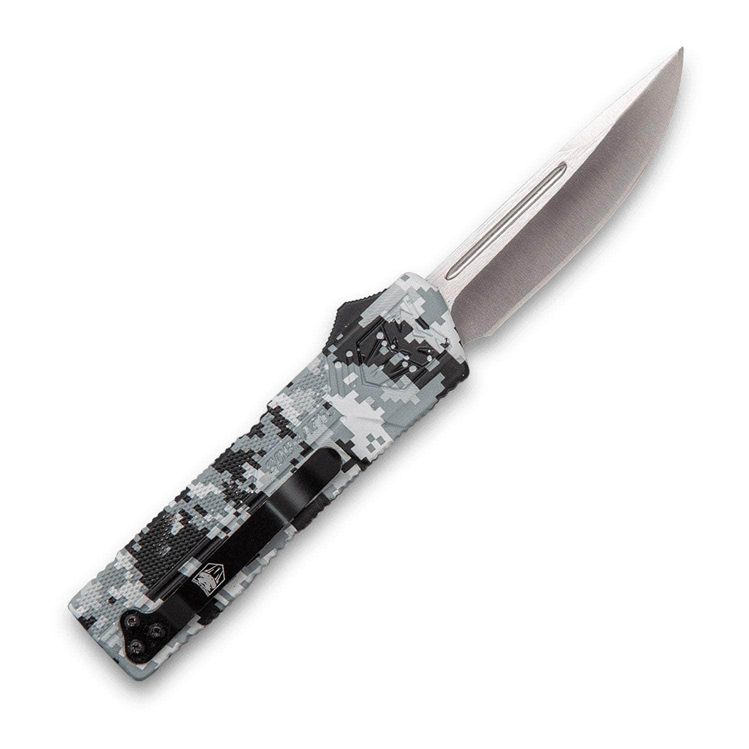 CobraTec Knives WDCCTLWDNS Lightweight 3.25" OTF Drop Point Plain D2 Steel Blade/Winter Digi Camo Aluminum Handle Includes Pocket Clip