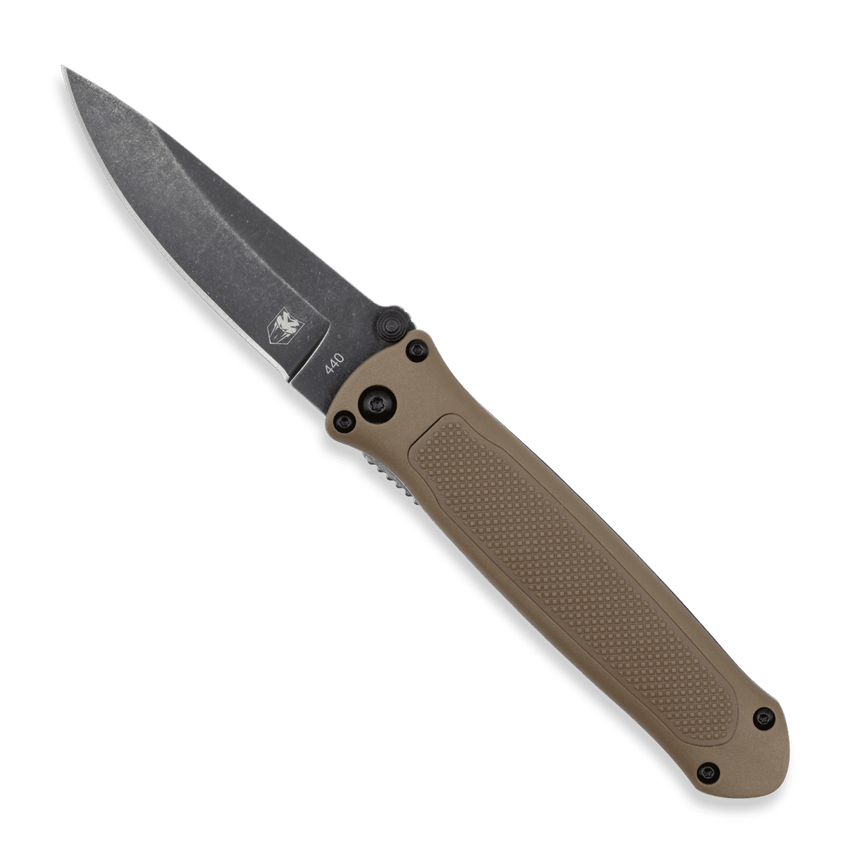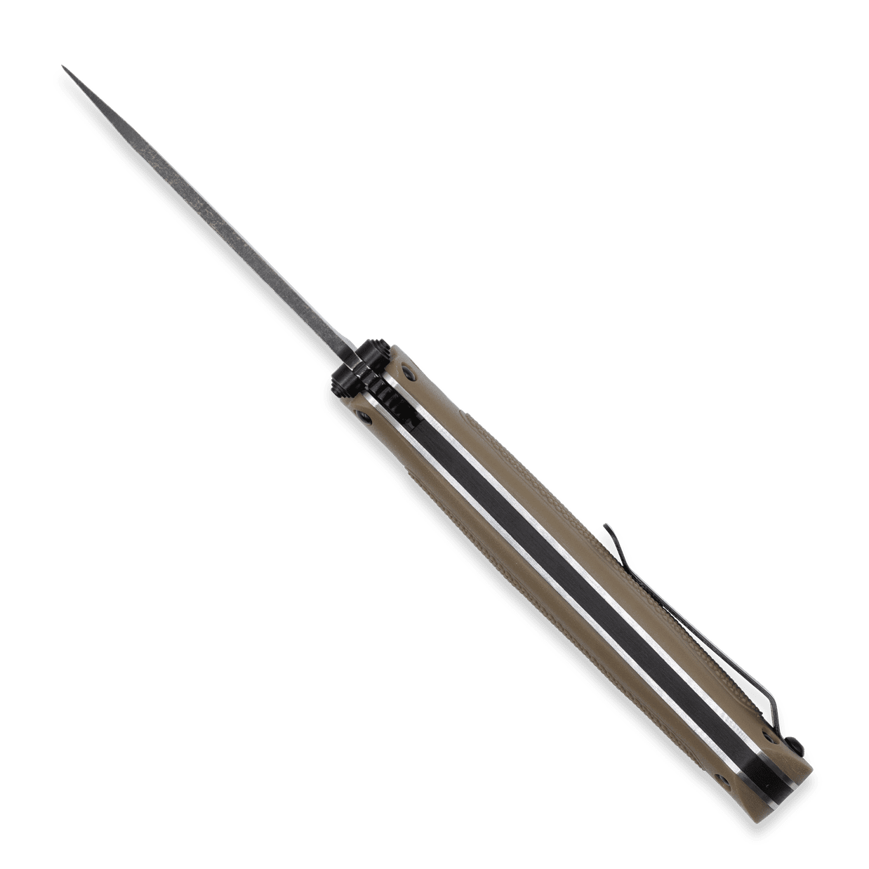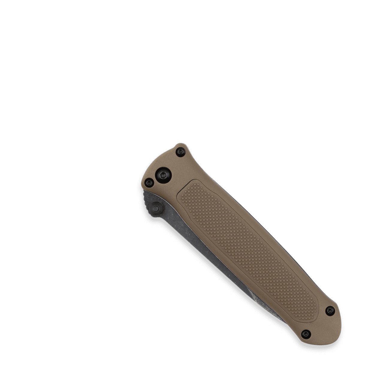 - G-10 handle with knurled rubberized grip