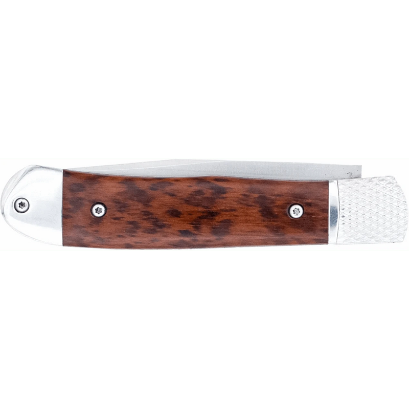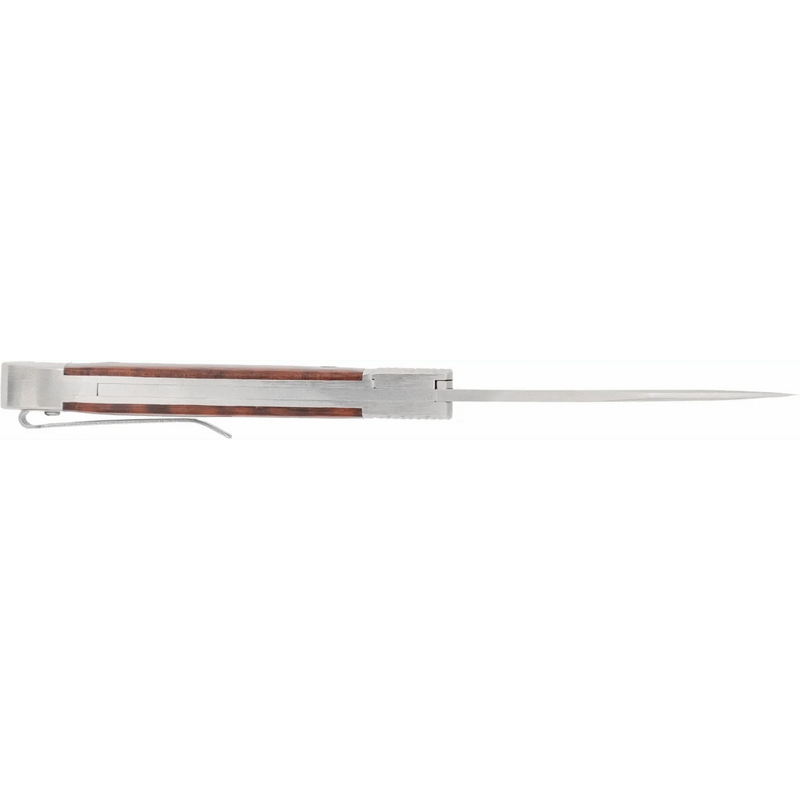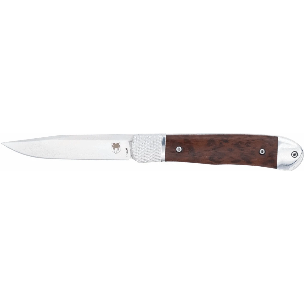 The Patent Pending Trapper, equipped with a concealed release mechanism, Snakewood scales and an exceptional 154CM blade, exemplifies the innovative intersection of style, durability and functional utility. This premium folding knife is expertly engineered as a sophisticated everyday carry tool (EDC) to cater to the discerning taste of knife enthusiasts and collectors alike.