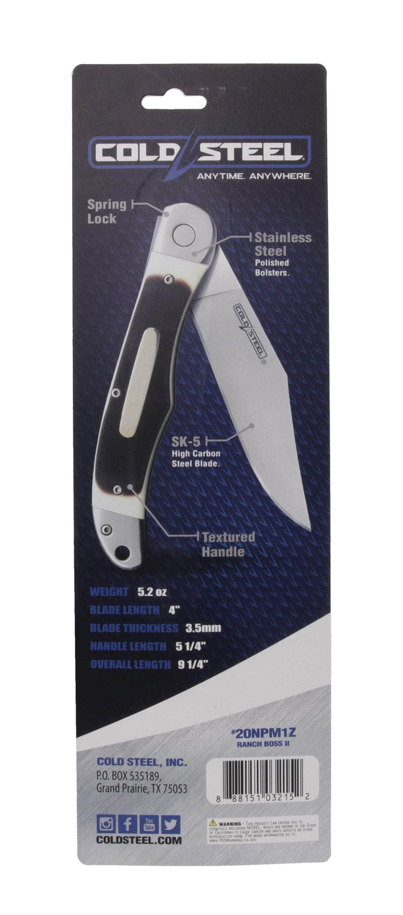 Cold Steel CS20NPM1Z Ranch Boss II 4" Folding Clip Point Plain Satin Polished/5.25" Faux Sawed Bone Handle