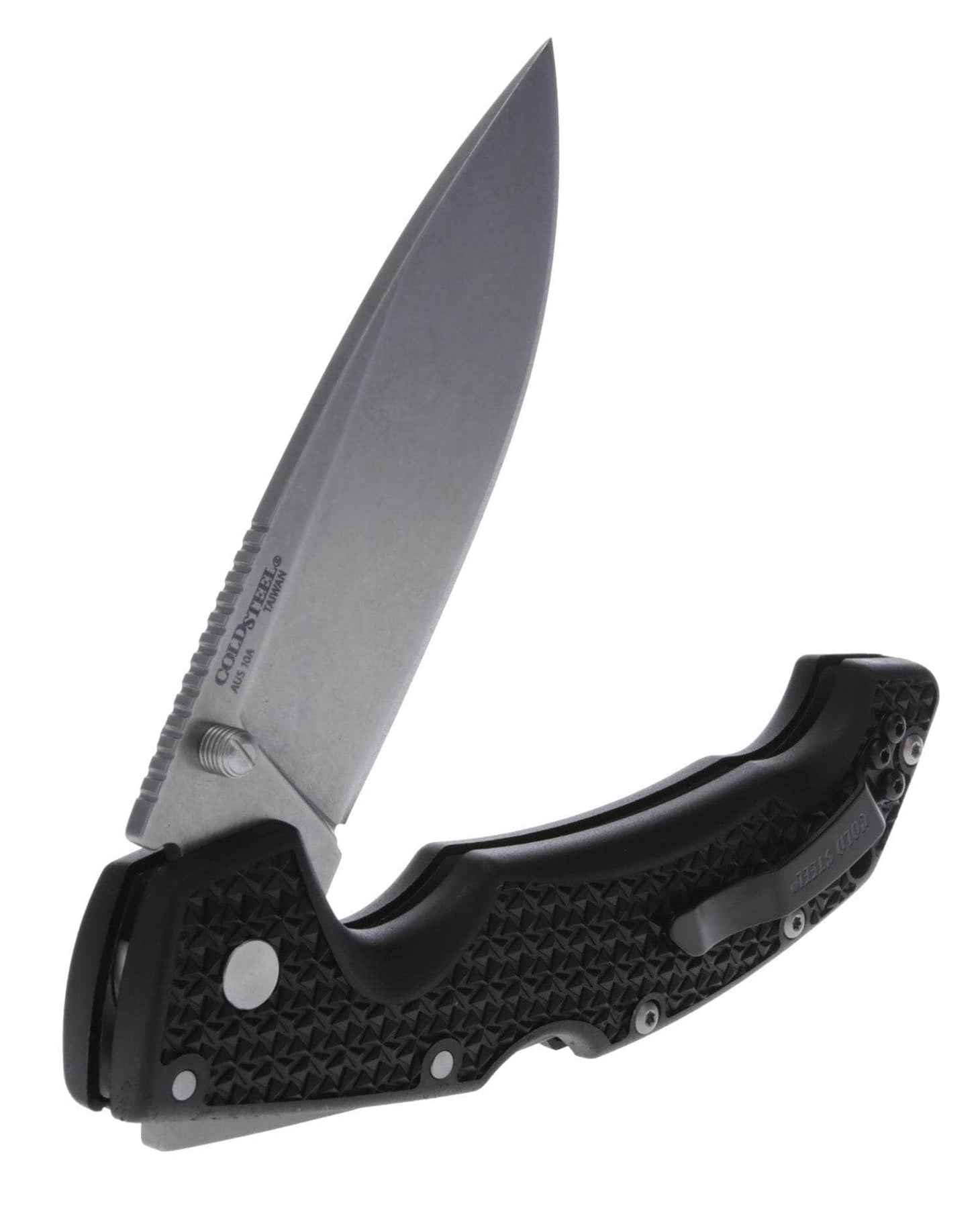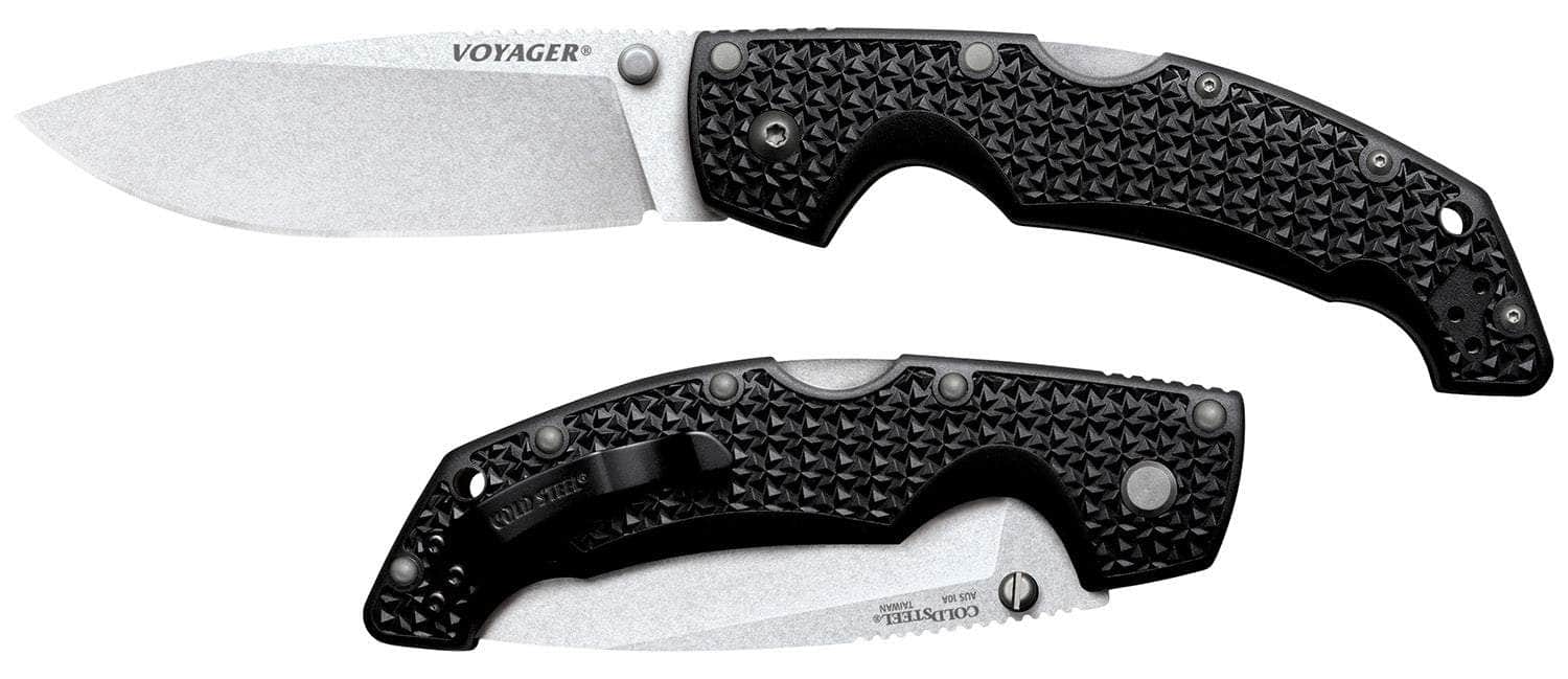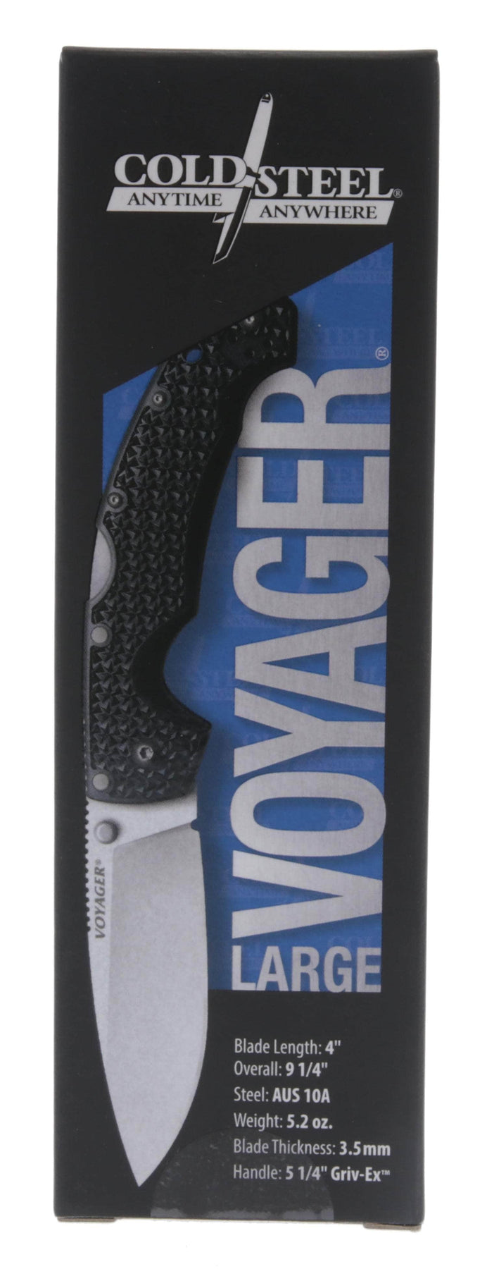 Cold Steel CS29AB Voyager Large 4" Folding Plain Drop Point Stone Washed AUS 10A Steel Blade/Black Textured Griv-Ex Handle