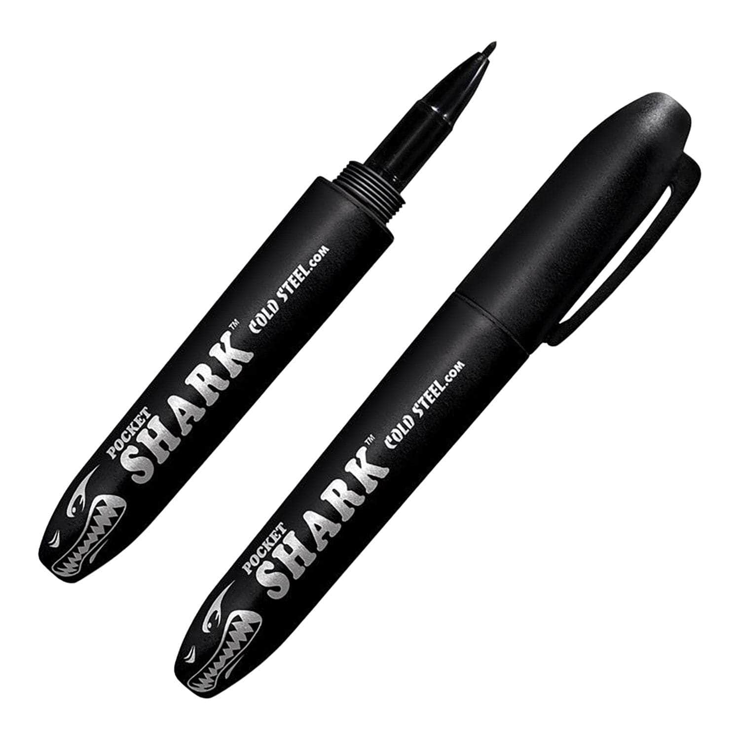 They say "the pen is mightier than the sword" - and Cold Steel makes some mighty swords, but the Pocket Shark makes for some clever competition. It's the biggest, baddest, permanent marker around! The Pocket Shark is made from a high impact polymer and features walls that are 4 times thicker than conventional markers. This means it's built for impact and will survive the meanest blows and roughest treatment imaginable. Plus, the screw on cap will stay in place and won't pop off like a regular marker and leak all over your clothes. Clip it to a shirt or coat pocket, or carry in your purse, pack or brief case. There's simply no excuse not to own one!