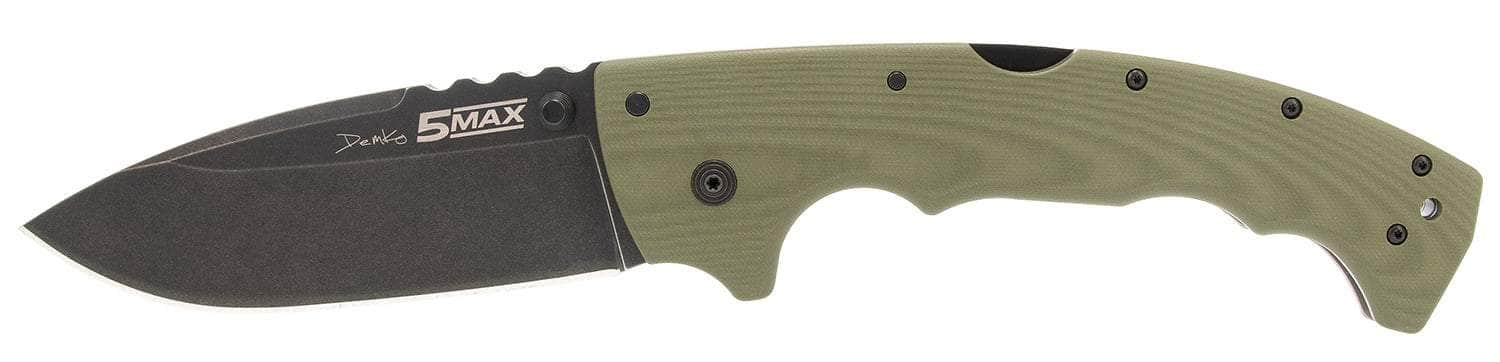 Cold Steel CSFL50MAX 5-Max 5" Folding Drop Point Plain Black Stonewashed S35VN Blade, 7.13" OD Green Textured G10 Handle