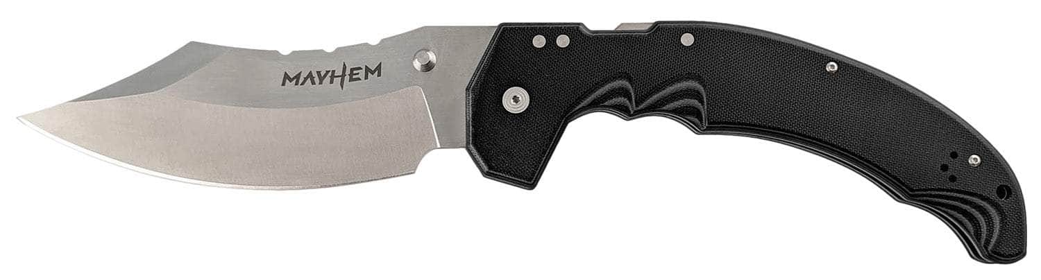 Cold Steel CSFL60DPLM Mayhem 6" Folding Clip Point Modified Cleaver Plain Satin AUS-10A SS Blade/7.20" Black Contoured G10 Handle Includes Pocket Clip