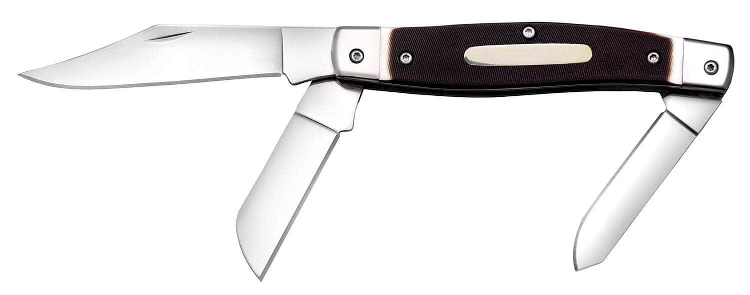 Cold Steel CSFLSTKMN Stockman 2"/2.30"/3.50" Folding Clip/Sheepsfoot/Spey Plain 8Cr13MoV SS Blade/Rough Black w/Polished Bolsters Bone Handle