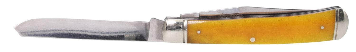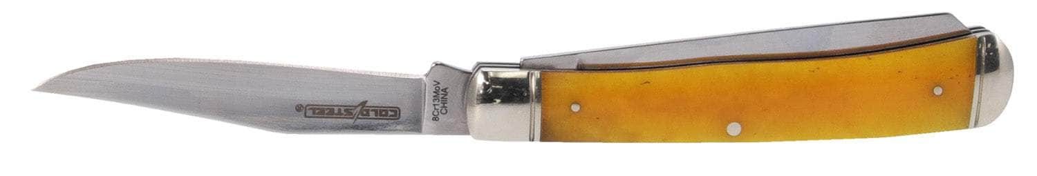 Cold Steel CSFLTRPRY Trapper 3" Folding Clip/Spey Plain 8Cr13MoV SS Blade/Yellow w/Polished Bolsters Bone Handle