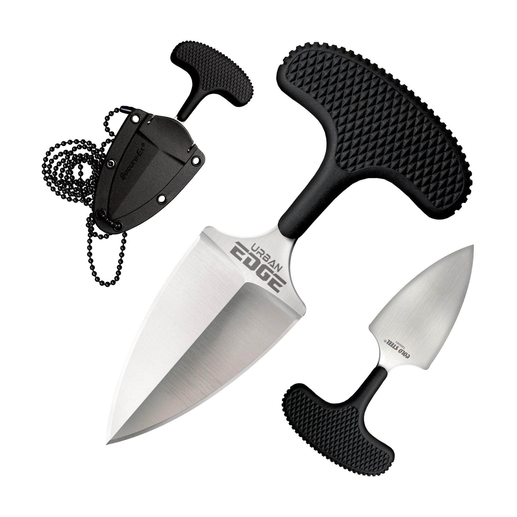 Cold Steel Urban Edge, 2.5, Plain Edge, AUS 8A/Stainless, Black, Kraton, Secure-Ex Sheath CS-43XL