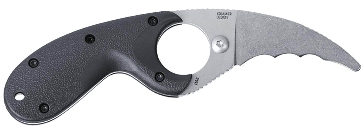CRKT 2511 Bear Claw 2.39" Fixed Hawkbill Veff Serrated Stonewashed AUS-8A SS Blade, Black Textured GRN Handle