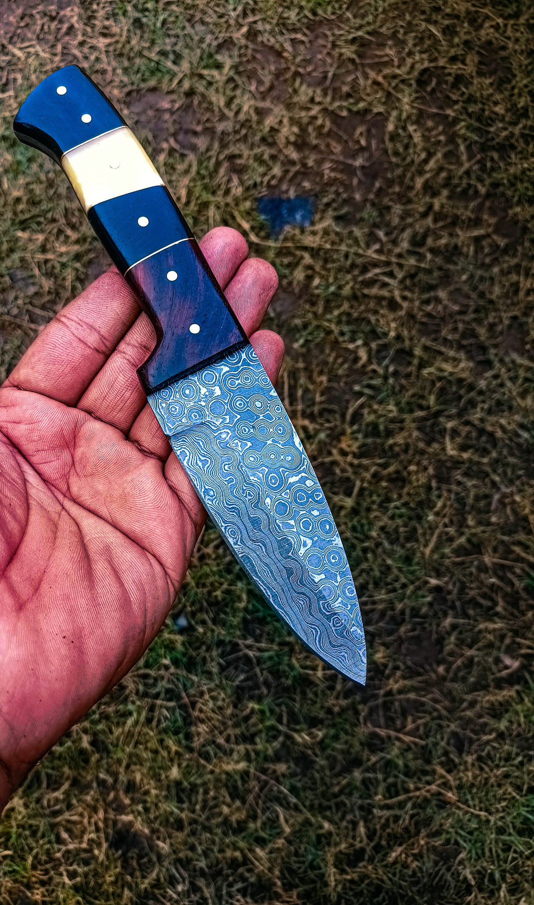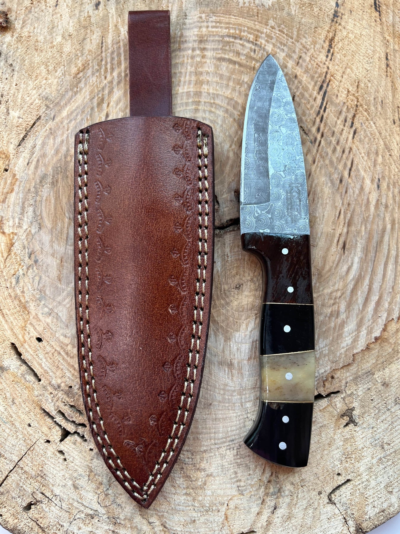 Handmade Damascus Blade: Features a 4-inch hand-forged Damascus Steel blade with superior edge retention.