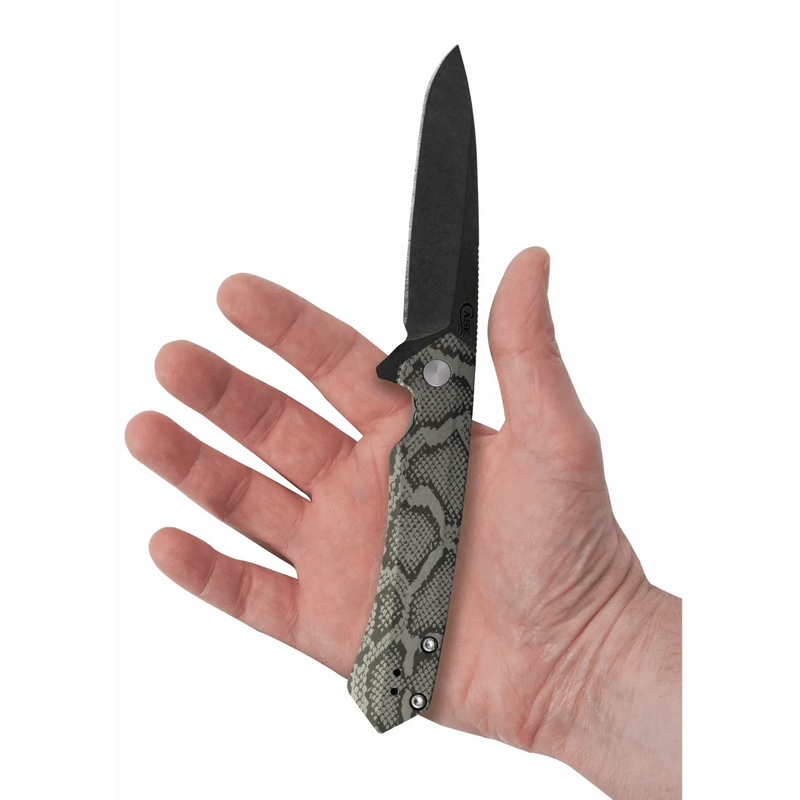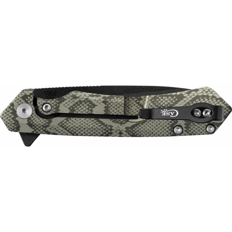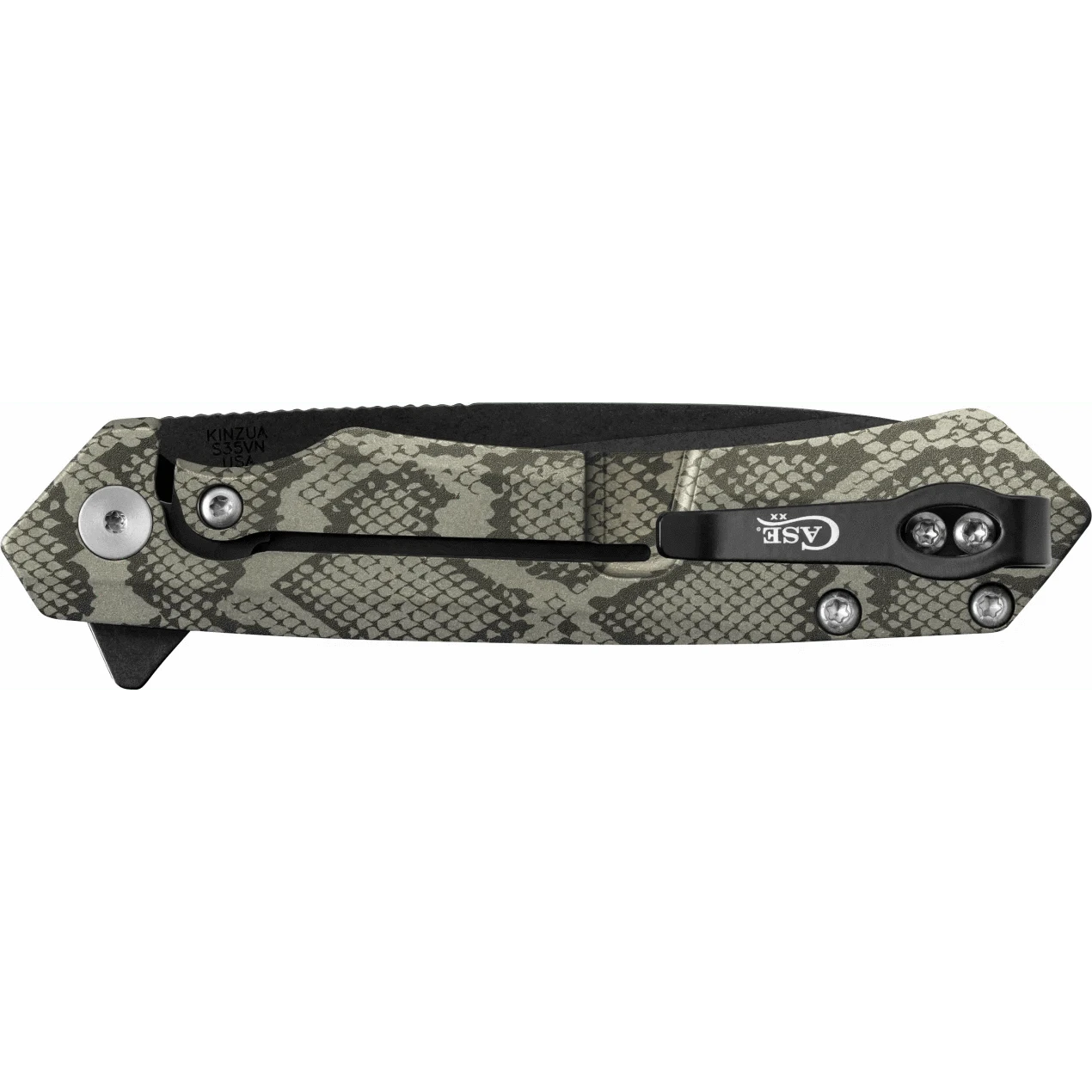 The Kinzua® is an modern chapter in the story of Case® knives. This new one-handed opening knife features a S35VN spear blade with a DLC coating finish. The knife handle is made of durable, lightweight anodized aluminum with a triple-faceted face. Its flipper design offers quick and reliable deployment with a simple flip of your index finger and snaps open on a ball bearing pivot. The frame locking mechanism secures the blade in position when fully opened. A reversible deep carry steel pocket clip allows for a comfortable, and versatile, pocket carrying experience. The Kinzua® name is inspired by a scenic stretch of forest in the Allegheny region and the knife is a part of the first collection of Modern Everyday Carry knives to be crafted in our Bradford, PA factory.