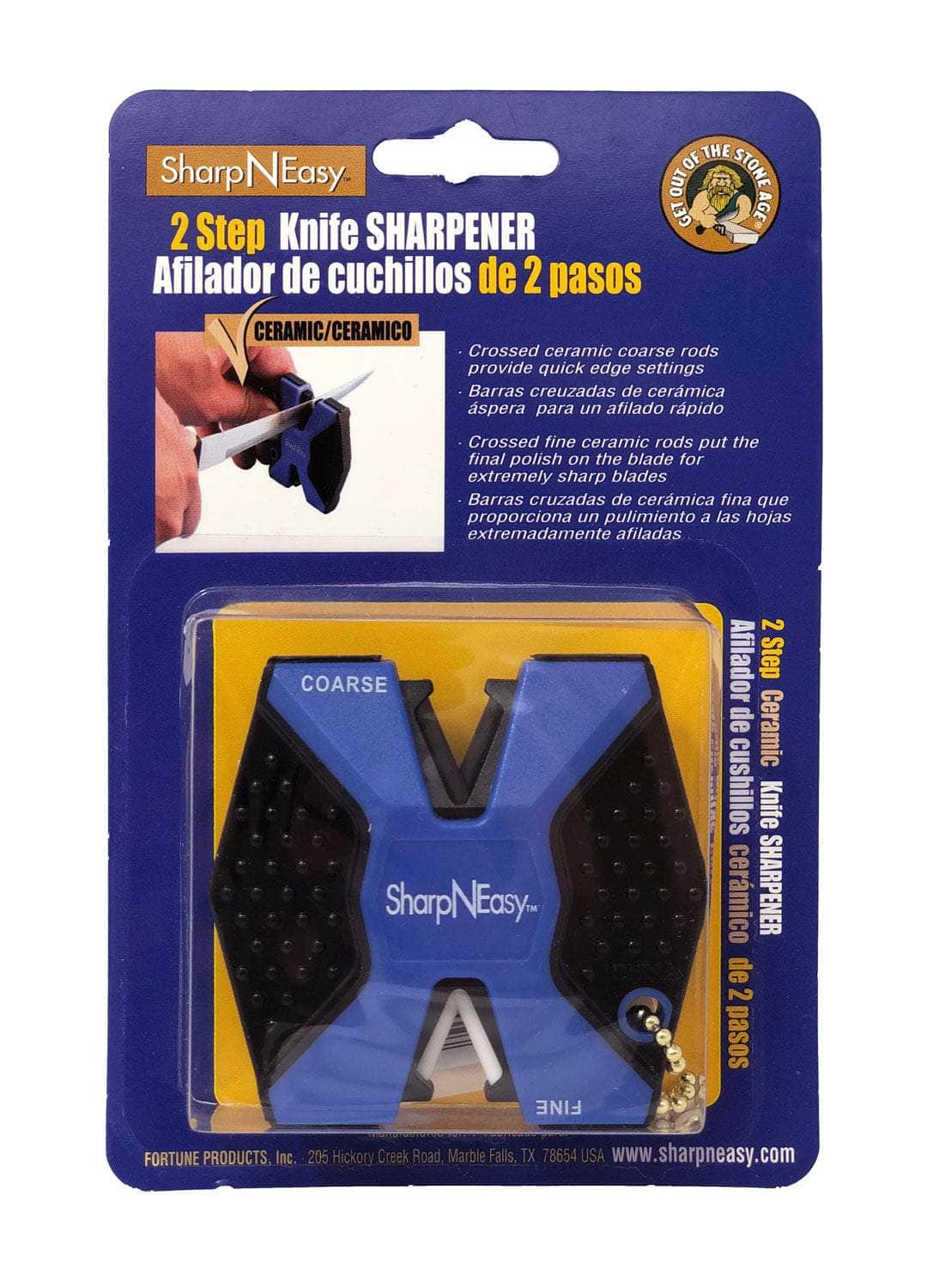 AccuSharp 334C SharpNEasy 2-Step Sharpener Hand Held Fine Coarse Ceramic Stone Sharpener Plastic Handle Black/Blue