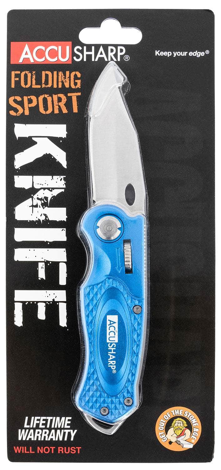 AccuSharp 701C Sport 3" Folding Plain Stainless Steel Blade/Blue Anodized Aluminum Handle Includes Belt Clip