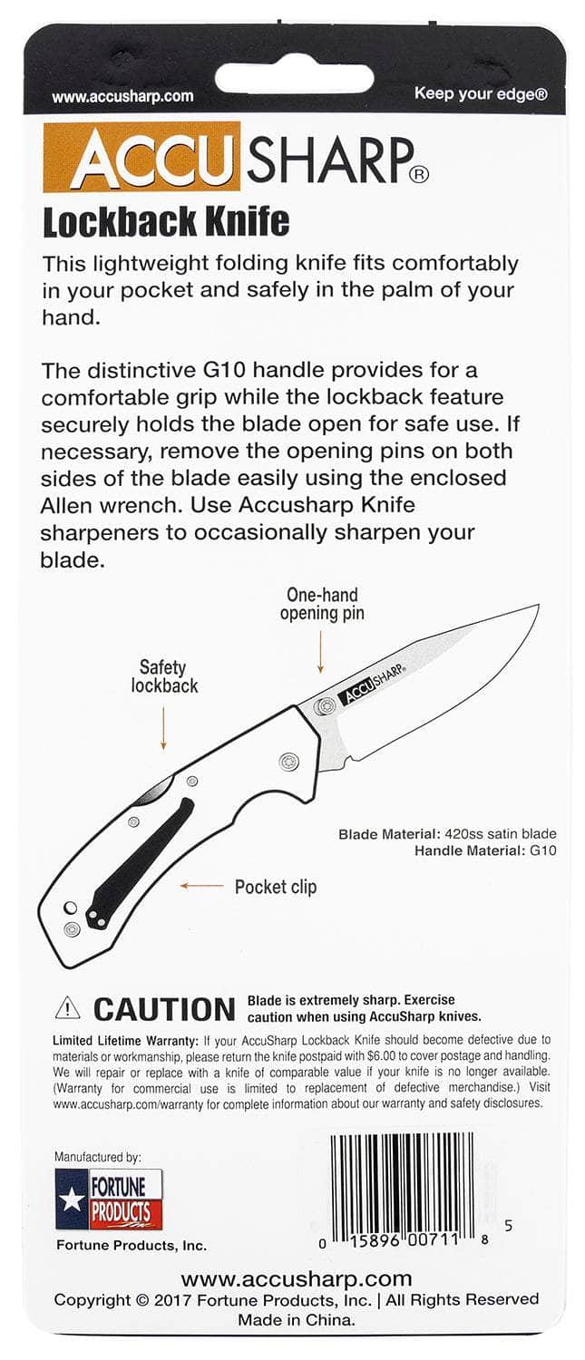 AccuSharp 711C Lockback 3" Folding Clip Point Plain Stainless Steel Blade/Black FRN Handle Includes Allen Wrench