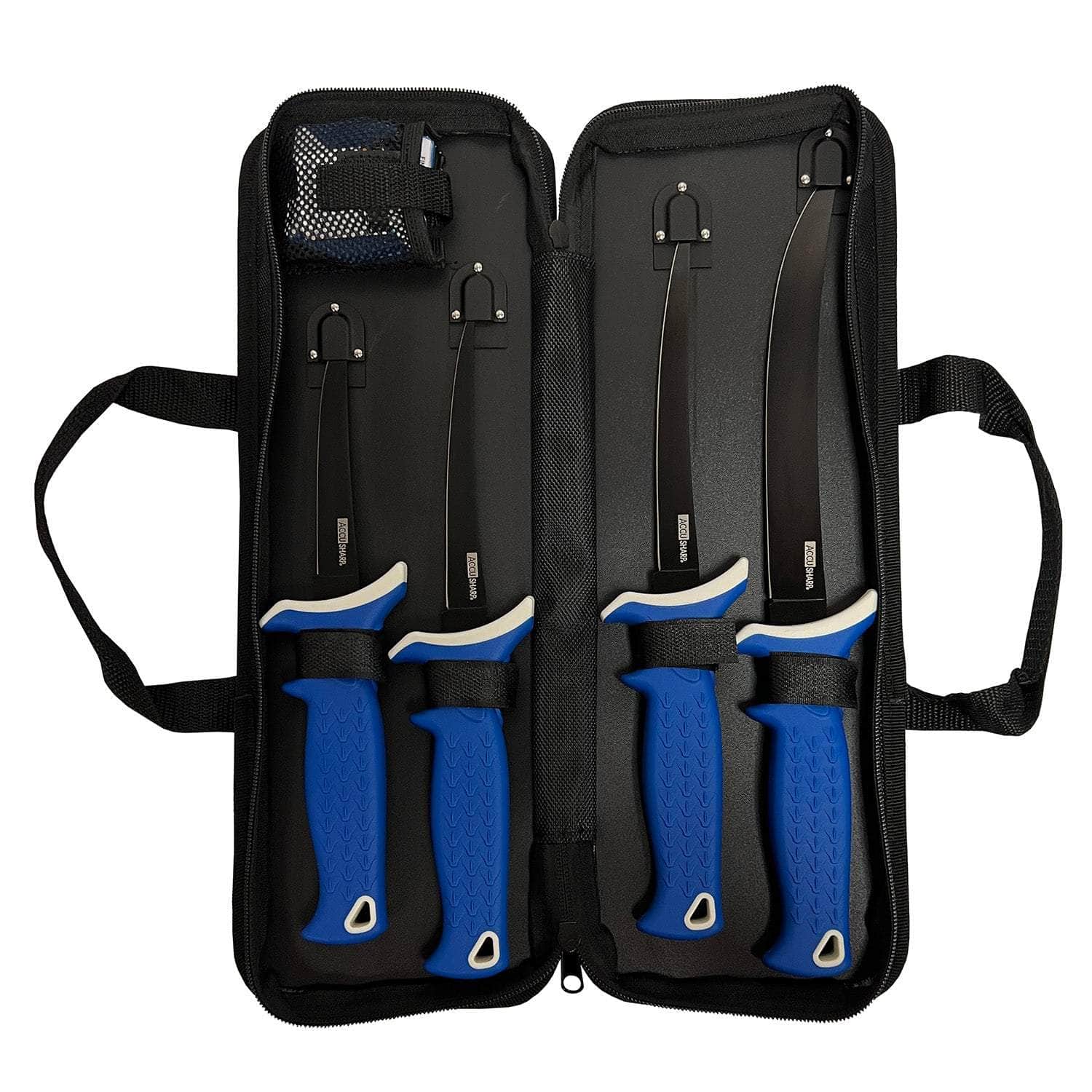 AccuSharp 737C Knife Kit 4.75/5.50/6.50/8" Fixed Fillet Plain Satin Stainless Steel Blade/ Blue Non-Slip Grip TPR Handle Includes 2-Step Sharpener