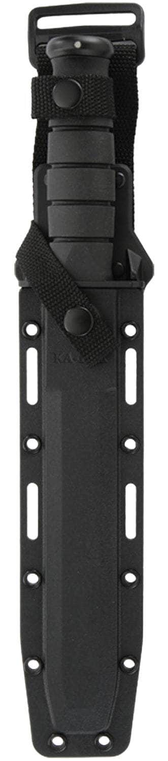 Ka-Bar 1245 Tanto 8" Fixed Tanto Part Serrated Black 1095 Cro-Van Blade, Black Kraton G Handle, Includes Sheath