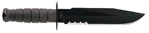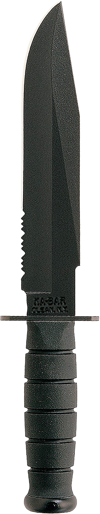 Ka-Bar 1271 Fighter 8" Fixed Clip Point Part Serrated Black 1095 Cro-Van Blade, Black Kraton G Handle, Includes Sheath
