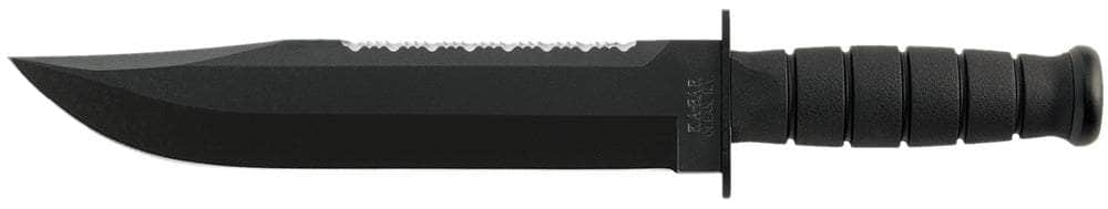 Ka-Bar 2211 Big Brother 9.38" Fixed Top Serrated/Bottom Straight Plain Black 1095 Cro-Van Blade, Black Kraton G Handle, Includes Sheath