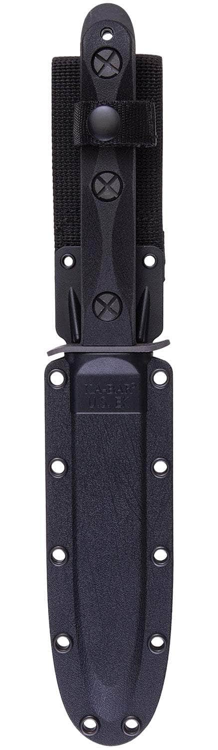 Ka-Bar EK44 Ek Model 4 6.63" Fixed Double Edge Spear Point Plain Stonewashed 1095 Cro-Van Blade, Black GRN Handle, Includes Sheath