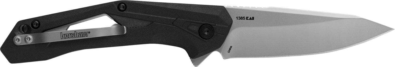 Kershaw 1385 Airlock EDC 3" Folding Drop Point Plain Bead Blasted 5Cr13MoV SS Blade, Black GFN/SS Handle