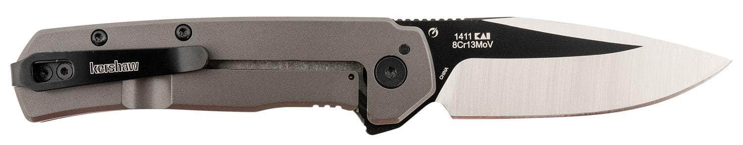 Kershaw 1411 Thermal EDC 2.95" Folding Drop Point Plain Black Oxide w/Satin Grinds 8Cr13MoV SS Blade, Gray PVD Stainless Steel Handle, Includes Pocket Clip