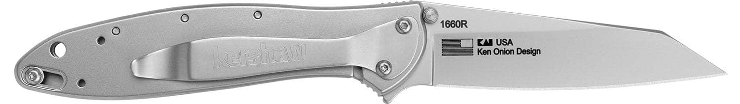 Kershaw 1660R Leek Random EDC 3" Folding Reverse Tanto Plain Bead Blasted 14C28N Steel Blade, Silver Stainless Steel Handle