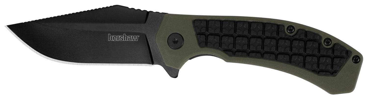 Kershaw 8760 Faultline 3" Folding Drop Point Plain Black Oxide 8Cr13MoV SS Blade Black/OD Green Glass-Filled Nylon Handle Includes Pocket Clip