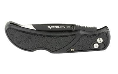 The Onyx 3.0" Replaceable Blade Knife by Outdoor Edge, a versatile and indispensable tool for every outdoor enthusiast. This compact and rugged knife is designed to handle a wide range of tasks, from field dressing game to everyday cutting needs. With its innovative replaceable blade system, the Onyx ensures you're always working with a razor-sharp edge. The Onyx comes with three blades in total and is compatible with 300 and 301 blades.