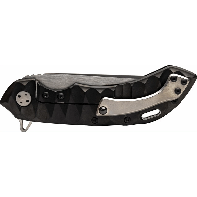 - Features: Scalloped Weight Reduction, Black PVD Ti Screws, Satin Pivot & Back Spacer, Fast Flipper Deployment, Tactical PVD Finish